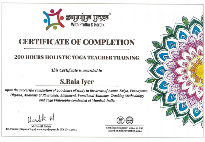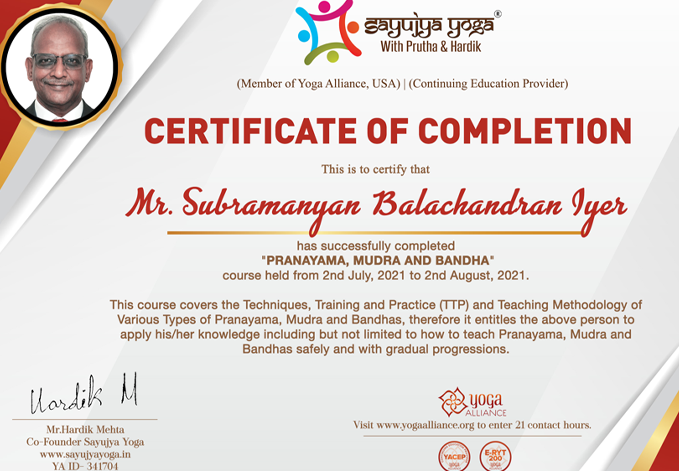 Successfully completed from Sayujya Yoga