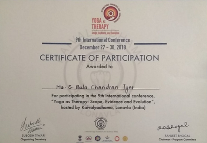 Dec 27-30th 2018 – YOGA AS THERAPY- Scope, Evidence & Evolution at Kaivalyadhama, Lonavla (India)